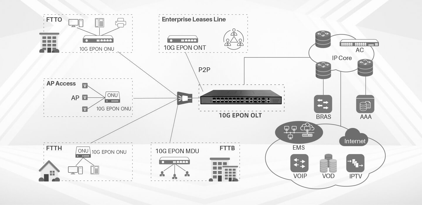 Metropolitan high-speed optical fiber network networking solution: Since XGS-PON supports long-distance transmission, it can be used to build a metropolitan area network, covering multiple areas within the city to meet urban wide area communication needs.
