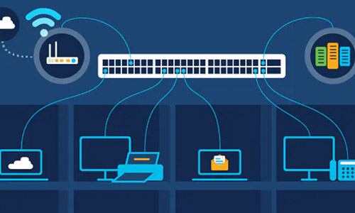 Network switches connect devices in the network and implement data exchange and forwarding within the LAN.