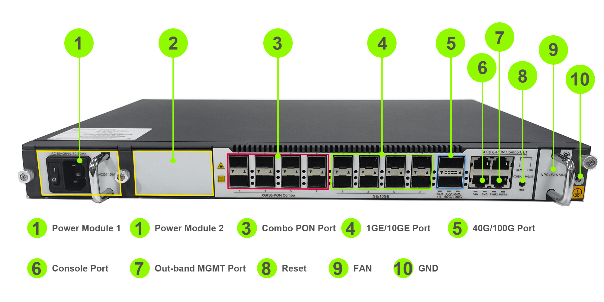 Port 8*XG(S)-PON/GPON port, 8*10GE/GE SFP + 2*100G QSFP28