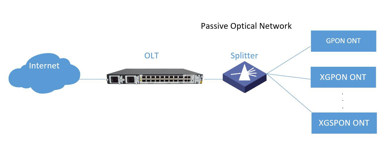 The XG-PON system usually consists of the OLT at the office side, the ONU and the ODN at the user side, and adopts a point-to-multipoint network structure. The ODN consists of single-mode optical fibers and passive optical devices such as optical splitters and optical connectors. It provides the optical transmission medium for the physical connection between the OLT and ONU.
